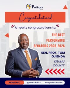 In its latest annual performance review, Politrack Africa has released the rankings of the top 15 best performing senators in Kenya for the period 2025–2026. The survey, which measures public approval and legislative effectiveness, reveals a competitive field with clear leaders emerging from both longstanding and newer political figures.